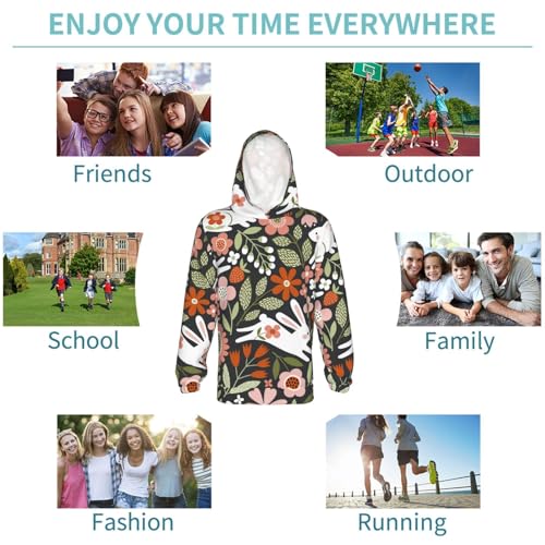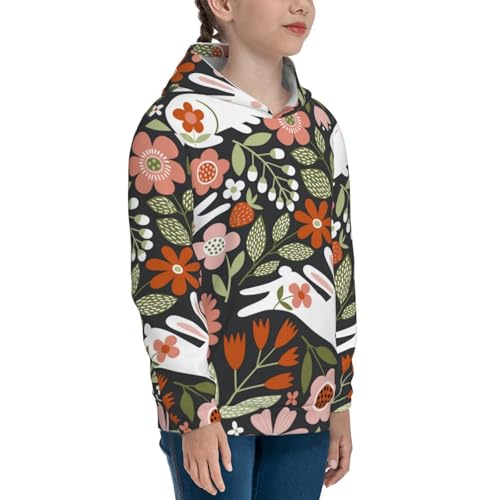 Rabbits on Floral Kid Hoodies Boys Sweatshirts Girls Pullover with Pocket 5