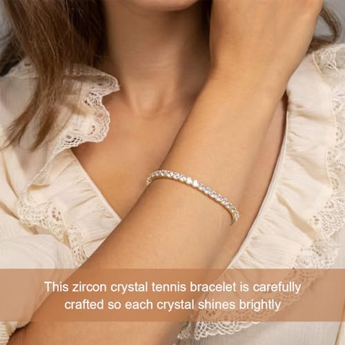 HOT ! 2 Tennis Bracelets for Women, 6mm Wide Gold-Tone Cubic Zirconia Bands, Elegant Jewelry Gift