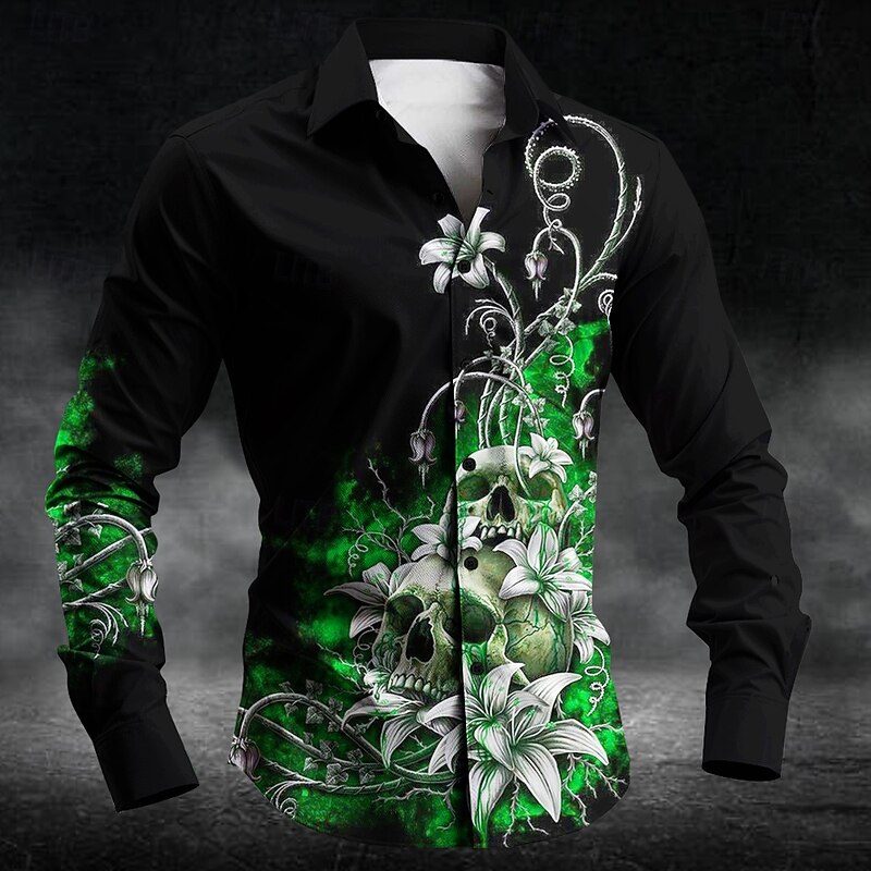 Men's Floral Halloween Costumes Day of the Dead Dress Shirt Button Up Shirt Long Sleeve Casual Business Casual Party Evening Wear Business Daily Fall Winter Spring & Summer Shirt Collar Button Up 3D 3
