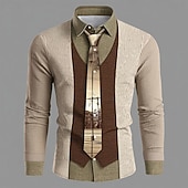 More information about Men's Novelty Faux Collar and Cardigan Design Shirt Button Up Shirt Long Sleeve Vintage Retro Outdoor Casual Daily Spring Fall Turndown 3D Print Collared Shirts Light Khaki Khaki