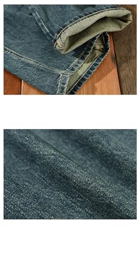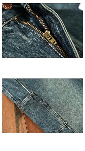 Men Medium Thick Straight Jeans Trousers Vintage Loose Multiple Pockets Work Cargo Denim Pants 4