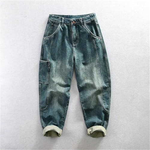 More information about Men Medium Thick Straight Jeans Trousers Vintage Loose Multiple Pockets Work Cargo Denim Pants