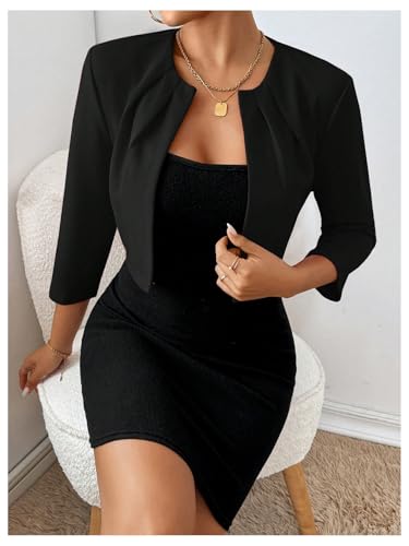 SOLY HUX Women's Blazer Jacket Open Front 3/4 Sleeve Pleated Work Office Cropped Jacket 1