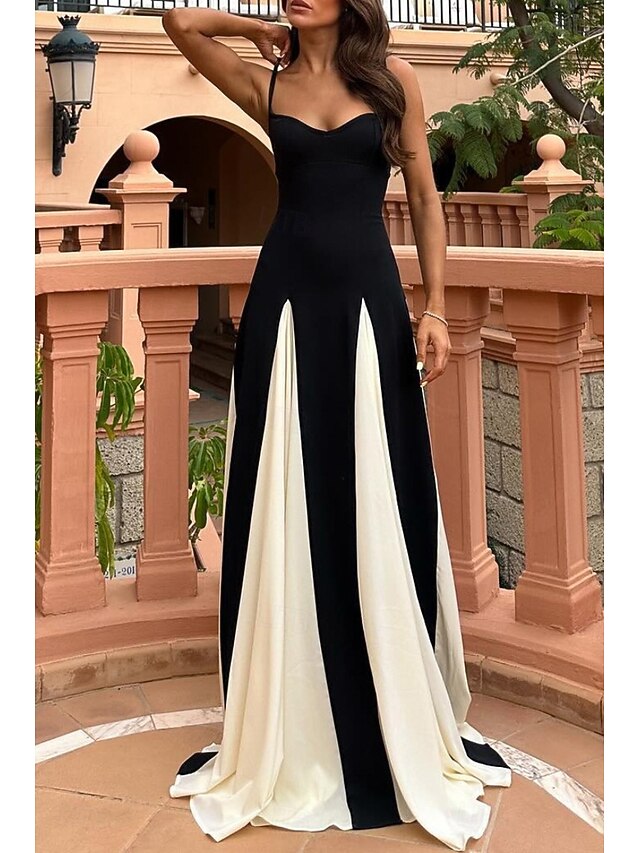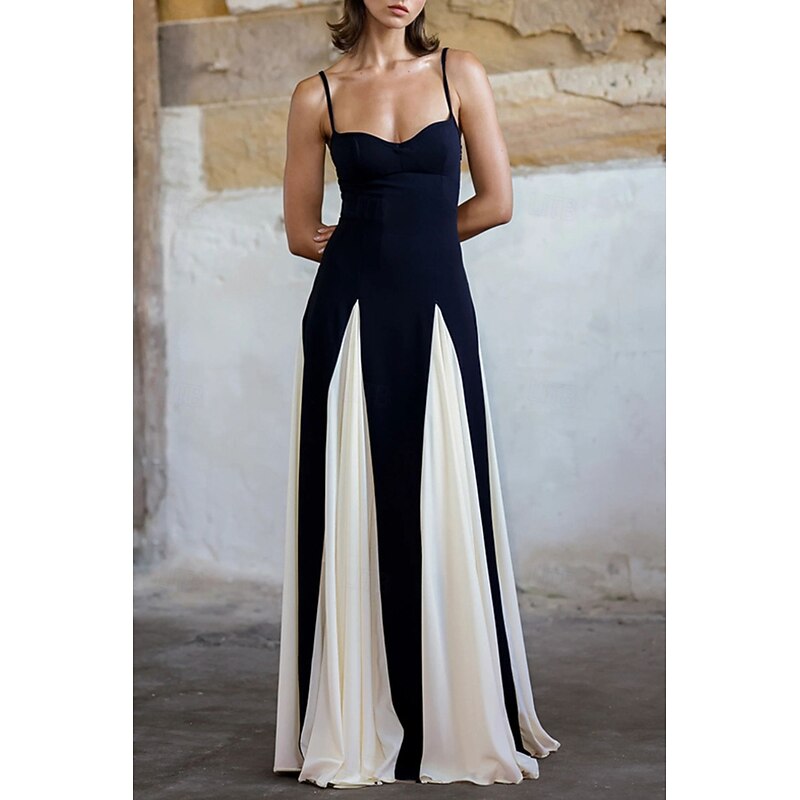 More information about Women's Long Dress Maxi Dress Cocktail Dress Slip Dress Elegant Fashion Tea Party Going out Weekend Regular Fit Color Block Sleeveless Spaghetti Strap Black Summer