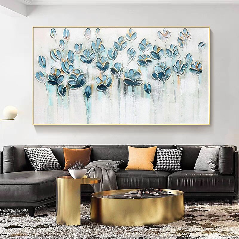 More information about Oil Painting Handmade Hand Painted Wall Art Modern Abstract Blue Texture Flowers Home Decoration Decor Rolled Canvas No Frame Unstretched