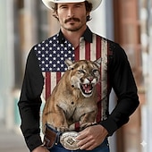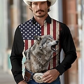 More information about Men's Animal Wolf American US Flag Shirt Western Shirt Button Up Shirt Long Sleeve Vintage Retro Holiday Casual Daily Spring Fall Turndown 3D Print Collared Shirts Black 1 Black