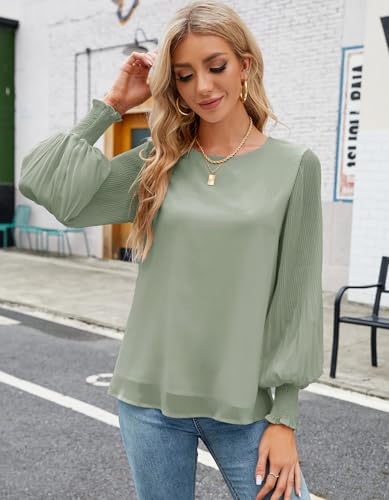 Aifer Womens Tops Dressy Casual Crew Neck Pleated Lantern Long Sleeve Work Shirts Chiffon Blouses Fashion 2025 5