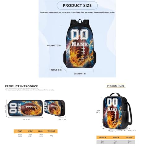 More information about Tuoxiukan Personalized Football Backpack for Boys 8-12 Custom Kids Backpack with Name and Number 3 Piece Bookbag with Lunchbox and Pencil Case Set for Girls Teenager Ages 14-16 Rucksack 17 Inch