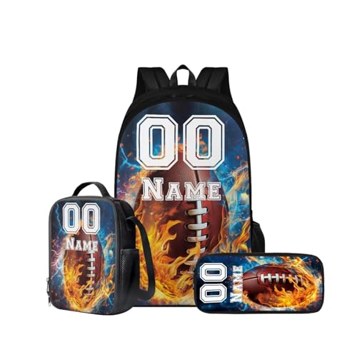 HOT ! Tuoxiukan Personalized Football Backpack for Boys 8-12 Custom Kids Backpack with Name and Number 3 Piece Bookbag with Lunchbox and Pencil Case Set for Girls Teenager Ages 14-16 Rucksack 17 Inch