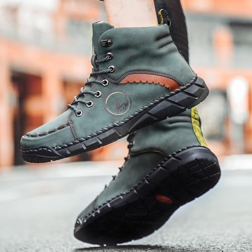 • 【Tough and Durable】Our full-grain leather upper features reinforced hand-stitching at every stress point and no bonded seams, making it less likely to peel or crack over time. The two-tone finish cleverly hides signs of wear and tear, and the leather naturally molds to your foot
