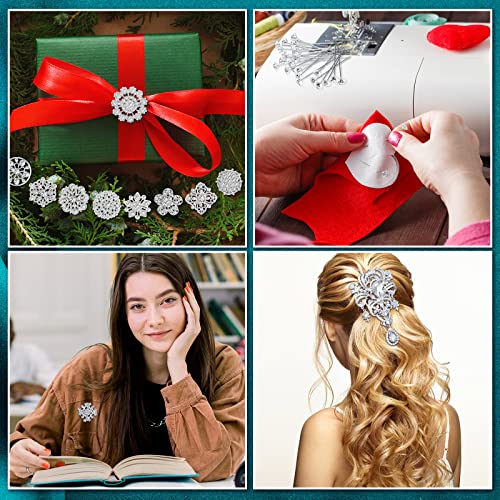 138 Pcs Flower Brooch Bouquet Pins Silver Rhinestone Brooches Diamond Brooch for Flowers Crystal Corsages Flower Straight Head Pins Bulk Christmas Brooches Jewelry Gifts for Crafting Wedding 4
