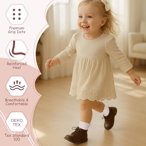 3 Pairs Girls Toddler Ruffle Socks - Baby Anti-slip Socks with Cute Grip Ruffle Frilly Dress Crew Design 7