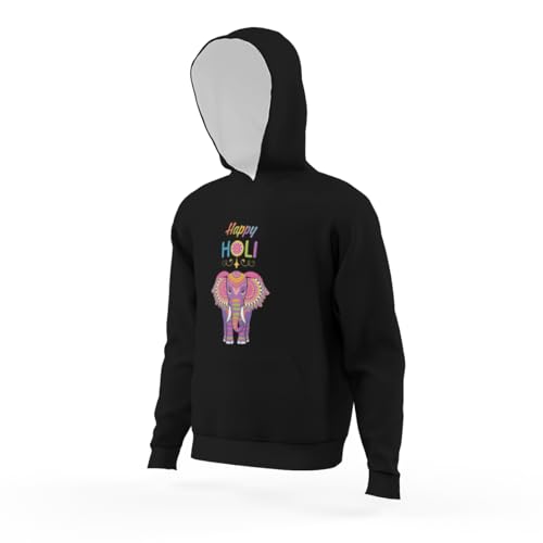 HOT ! Retro Happy Holi Colors Festival Spring Elephant Hoodies for Teen Girls Boys Lightweight Kangaroo Pocket Sweatshirt