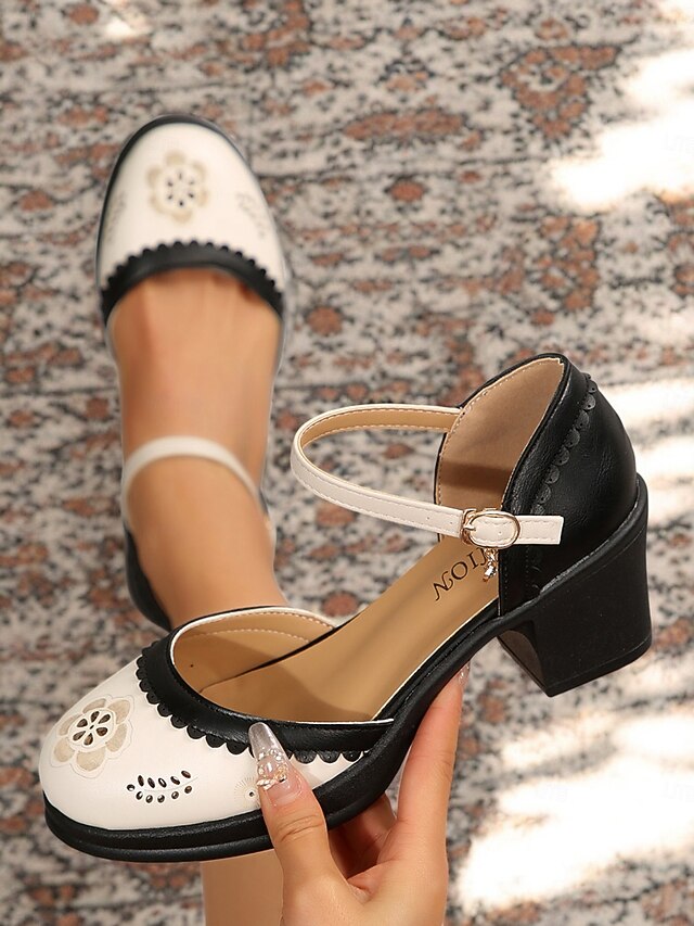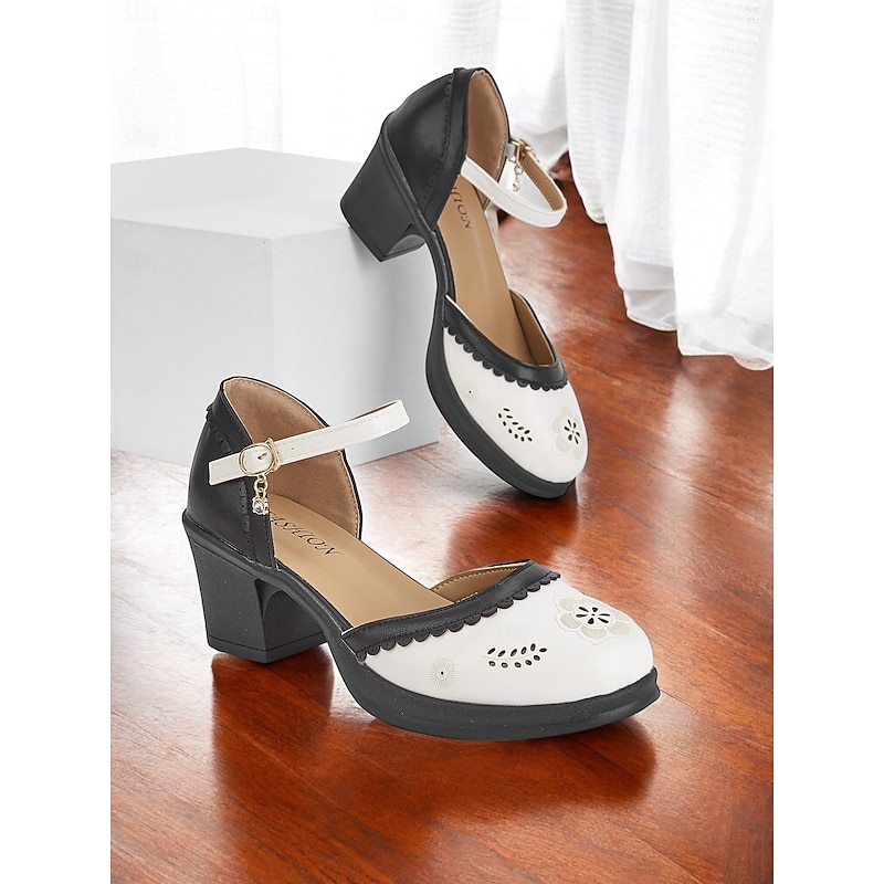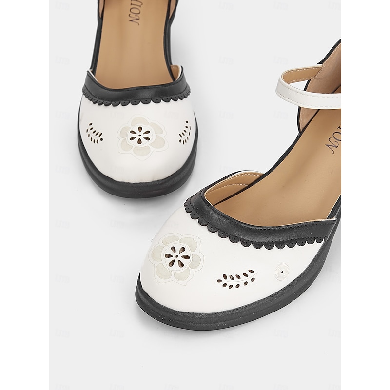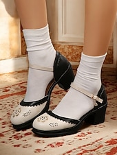 More information about Women's 1950s Retro - Style Brown and White Mary Jane Heels – Elegant Cut - Out Design for Daily Wear, Coffee Dates and Casual Office Settings