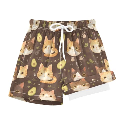 Cat Lilac Boy's Swim Shorts Little Boys Boys Board Shorts Swimwear Double Layer Quick Dry 7