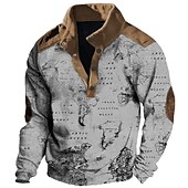 More information about Men's Nautical Map Graphic Prints Sweatshirts Sweatshirt Pullover Long Sleeve Sweatshirt Stand Collar Daily Casual Vintage Retro 3D Print Vacation Going out Streetwear Buttons Spring & Fall