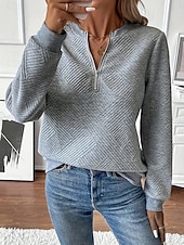 More information about Women's Pullover Sweatshirt Plain Casual Long Sleeve Crew Neck Regular Tops Street Dailywear Zipper Black White Pink Gray Fall Winter