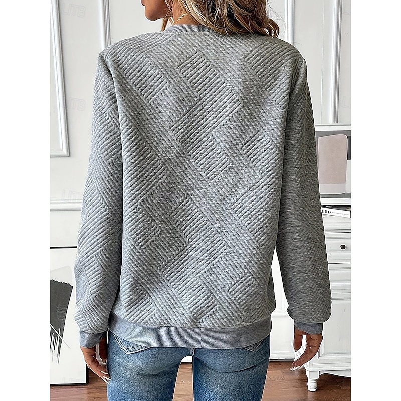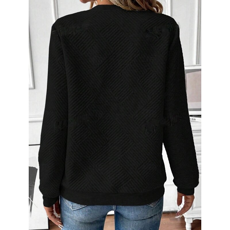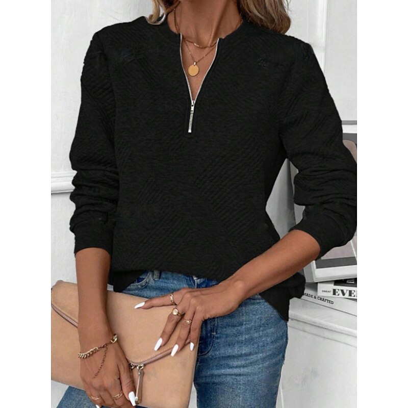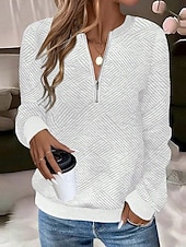 Women's Pullover Sweatshirt Plain Casual Long Sleeve Crew Neck Regular Tops Street Dailywear Zipper Black White Pink Gray Fall Winter 16