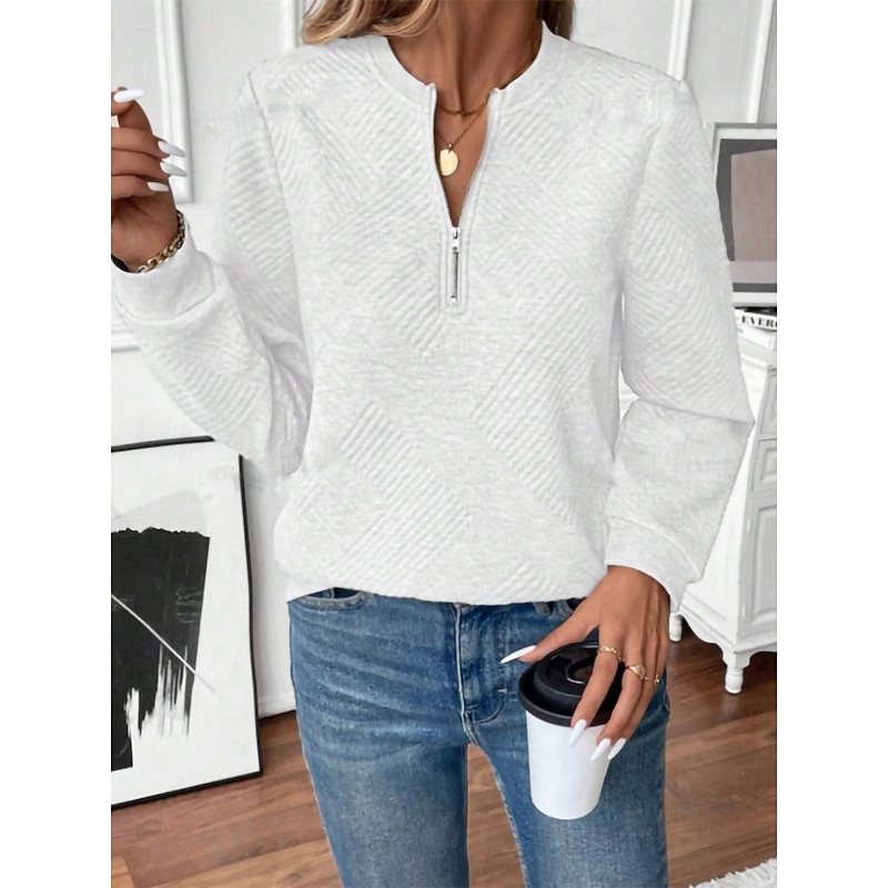Women's Pullover Sweatshirt Plain Casual Long Sleeve Crew Neck Regular Tops Street Dailywear Zipper Black White Pink Gray Fall Winter 17
