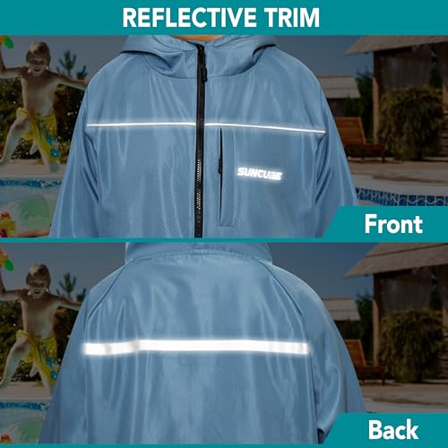 • SWIM PARKA WINDPROOF WATERPROOF: Made with high-performance material that repels water to keep you dry in wet conditions, this swim parka is perfect for poolside, beach, or rainy weather. Generously sized to fit all boy girl kids, it has a zipper front with pockets and adjustable cuff for perfect fit.