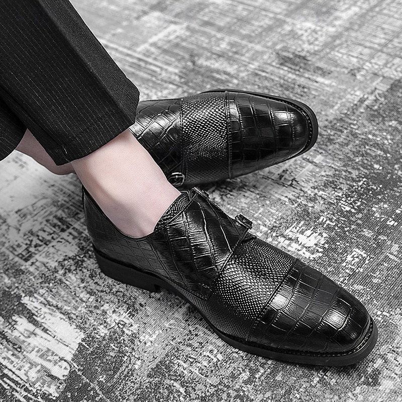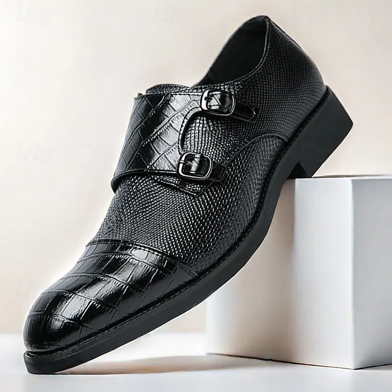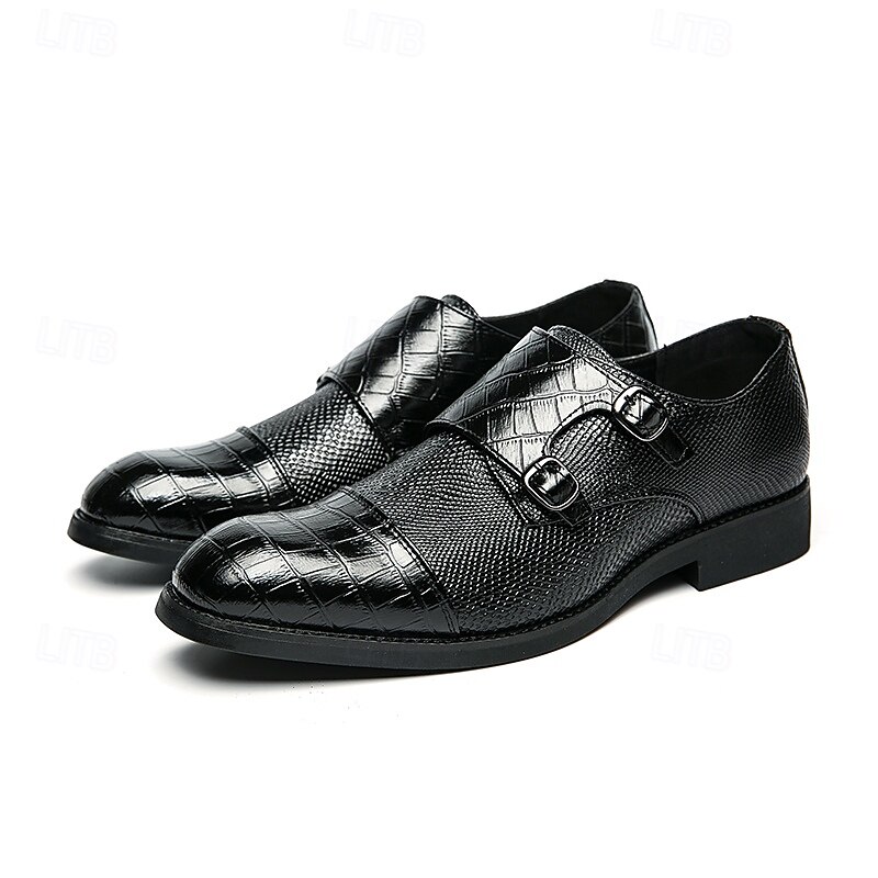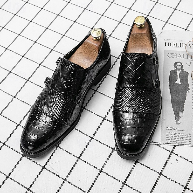 More information about Men's Blue and Brown Faux Leather Double Monk Strap Shoes with Crocodile Print – Premium Formal Footwear for Stylish Men, Ideal for Business, Weddings, and Special Events