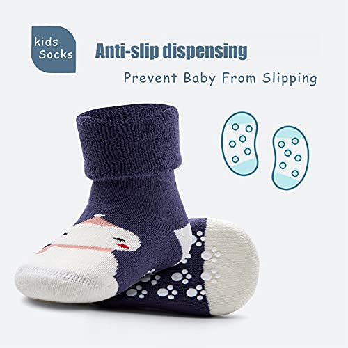 Baby Boys Winter Warm Socks Baby Non Slip Socks with Grips for Baby Girls Full Terry Christmas Socks 6 Pack 6